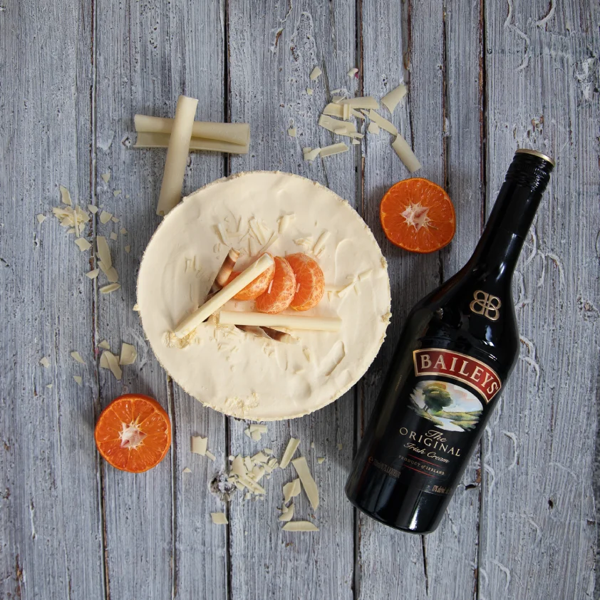 Irish Baileys & philadelphia cream cheese whipped and topped onto a digestive biscuit crumb base