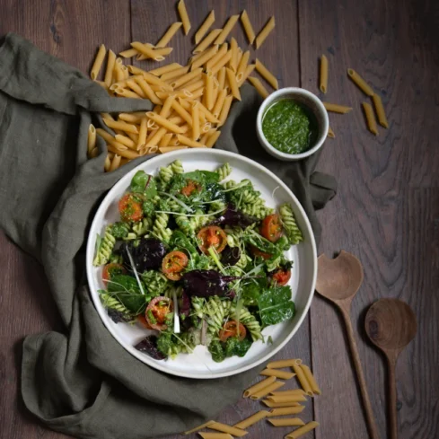 €13.50 Select options This product has multiple variants. The options may be chosen on the product pagePasta, cherry tomatoes, mixed leaves & pesto dressing